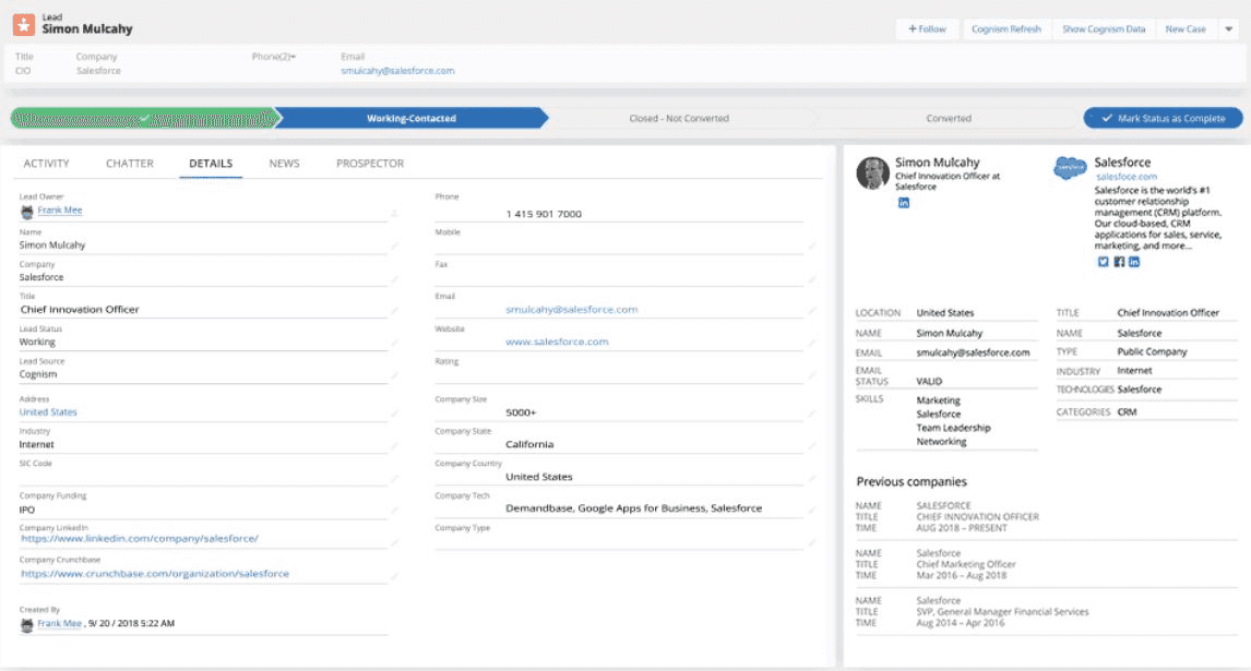 Enrichment and data intelligence to get key insights about prospects and accounts