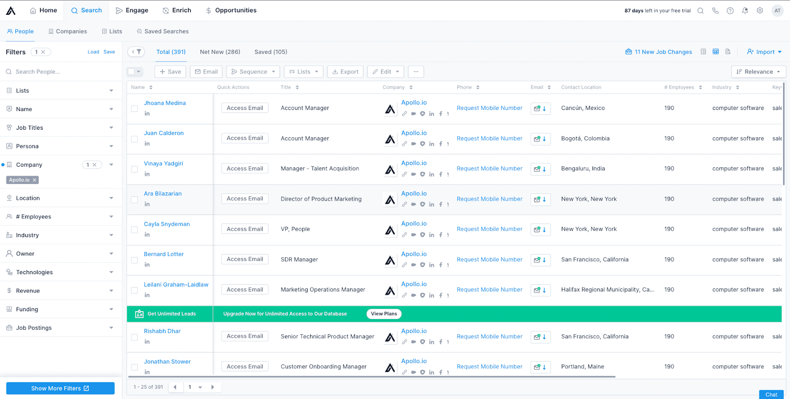 If you're looking for a powerful Lusha alternative, Apollo.io is definitely worth checking out. It's a data intelligence and sales engagement platform with an extensive database of over 275M professional contacts.