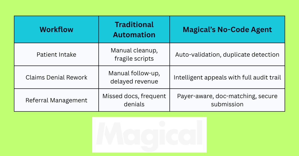 Agentic automation built on a HIPAA-compliant platform like Magical: