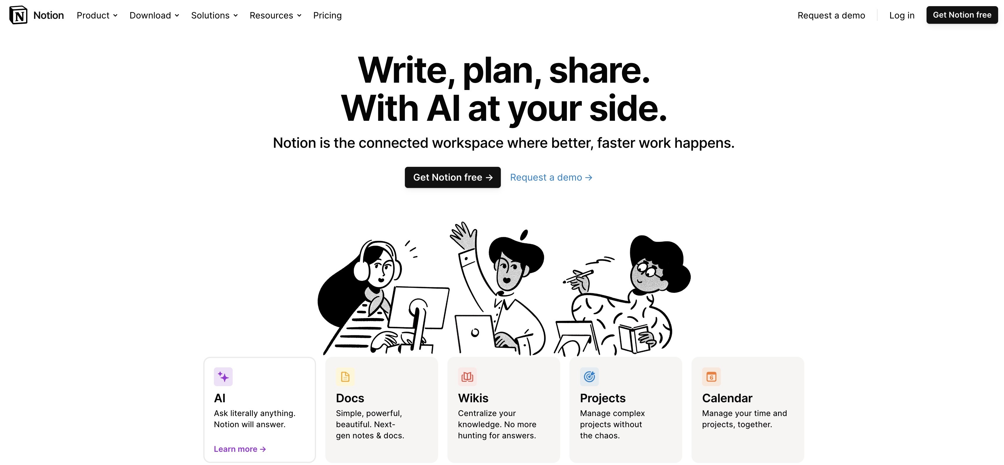 Flexible workspace that combines notes, tasks, wikis, and databases.