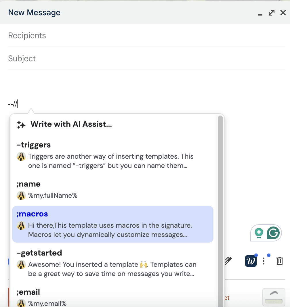 Imagine that you were sending out a blanket outreach email. Instead of typing in the recipient’s name, you can type in an abbreviation like @fname. And instead of typing out a specific email every time, you get to draw on one of your already constructed templates with a simple @email5. Presto!