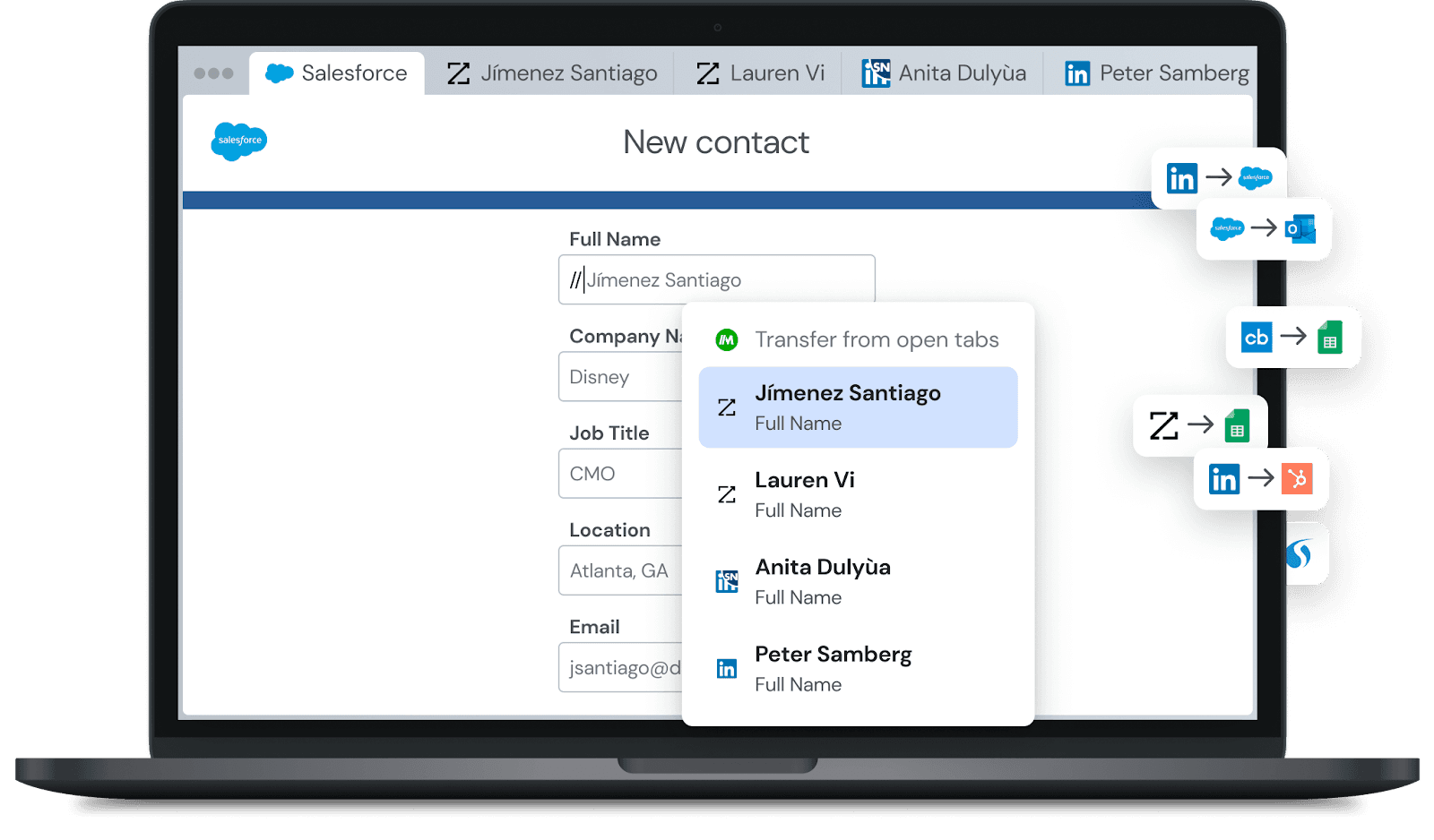Say you want to compile a list of potential prospects from LinkedIn. Magical will fill in a sheet for you based on info like name, location, headline, job title, and company. This data will then travel from one place to another without you having to enter it manually. What a win!