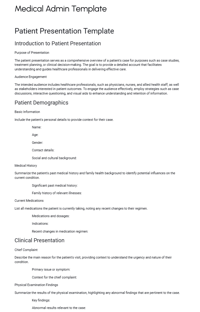 Patient Presentation Template