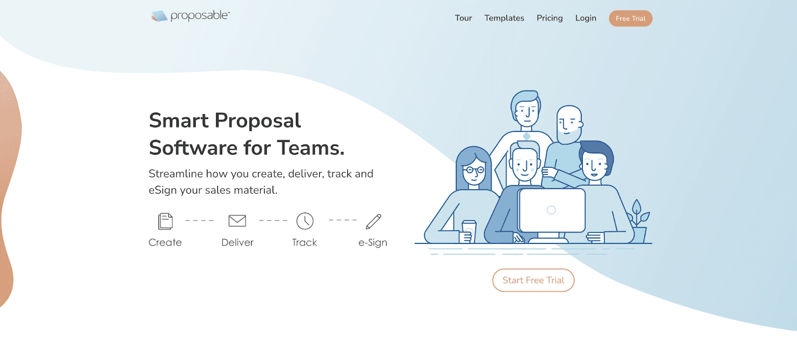 Proposable is a software that's made specifically for teams. Everything is created in the database and each team member can add or delete details and it saves your work automatically. Proposable is known for its comprehensive analytics and the ability to create detailed, customized proposals.