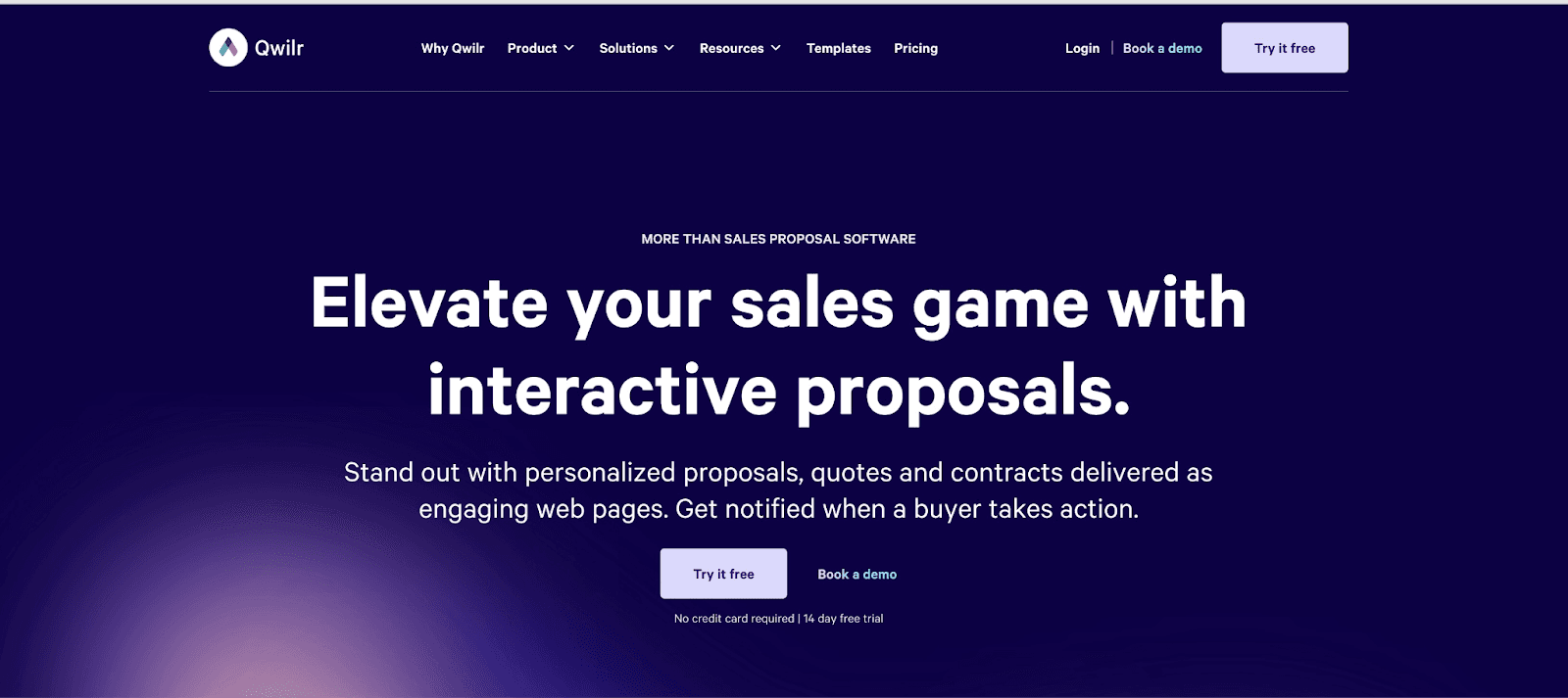 Qwilr is proposal software that allows you to personalize your proposals, contracts, and everything you need to close the deal. It stands out for its visually appealing proposal designs and its ability to integrate with various business tools for a streamlined workflow.