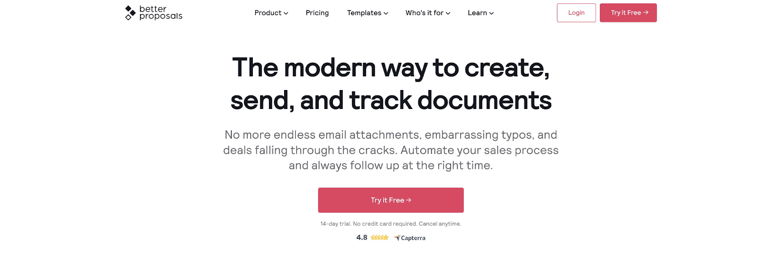 Better Proposals is a SaaS that gives you the ability to take customization to another level with responsive, customizable templates. They offer a simple and intuitive platform with a focus on creating high-converting proposals that can be easily tracked.