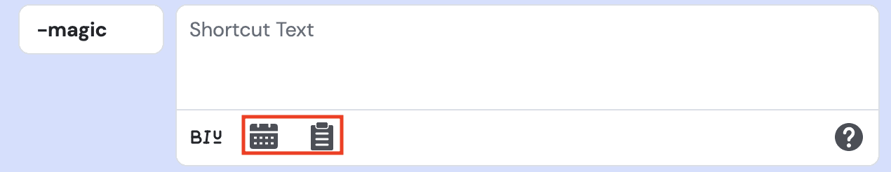 You can now add the Clip and/or Date macro directly into your shortcut from the shortcut text editor. No more fumbling around to remember exactly how to add it in.