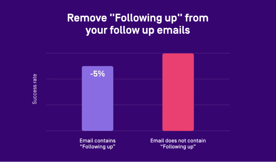 BTW, you probably shouldn’t say the phrase “following up” in your follow up email. According to Gong.io, that lowers the chance of booking a meeting by 5%.