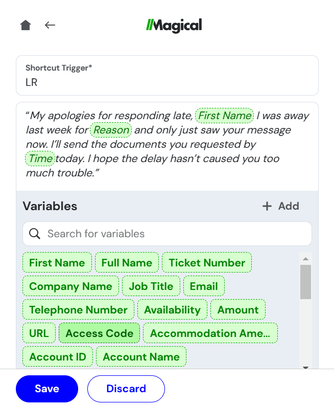 Save and customize your ‘sorry for the late response’ replies with Magical
