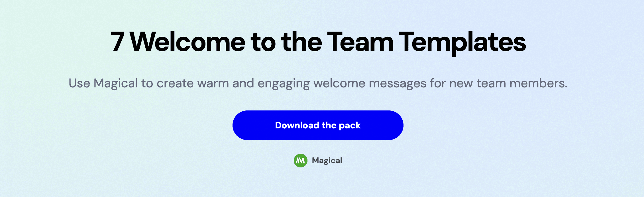 You’ll likely send similar welcome messages out to all your new employees with a few small tweaks, so to make life simpler you can speed things up using an automated text expander with templates. Check out Magical. You’ll save hours every week.