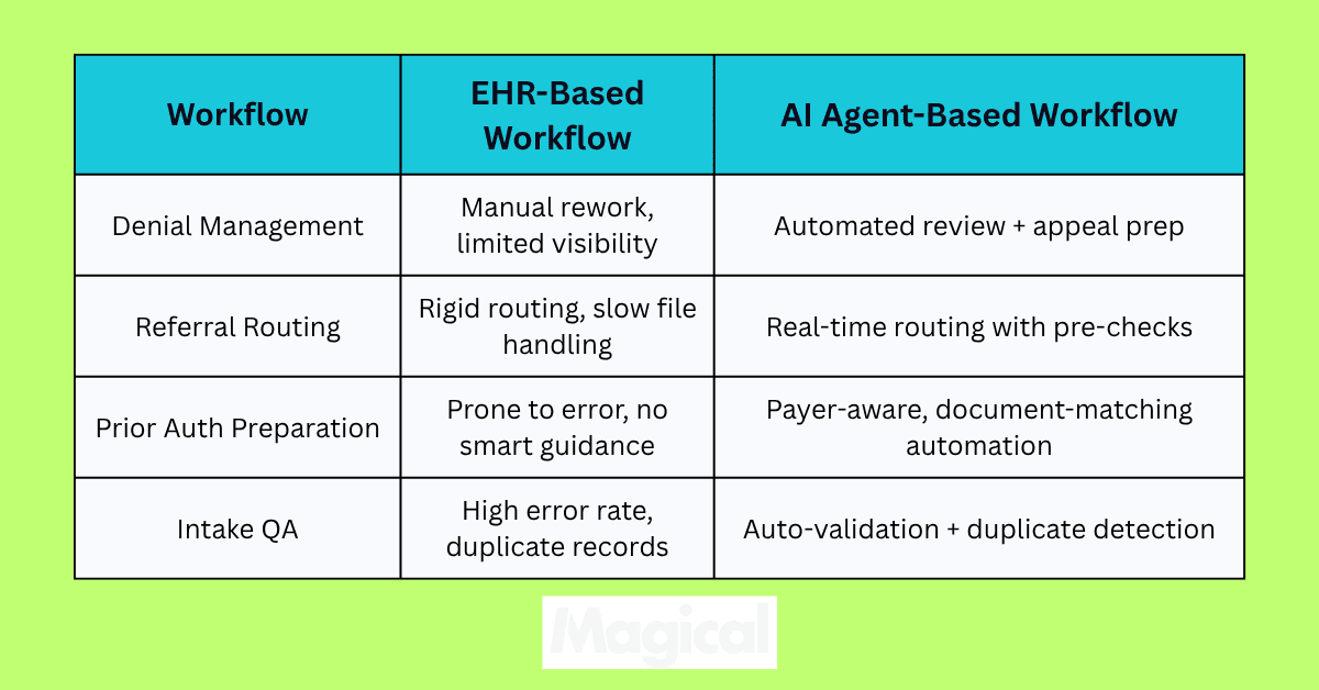 EHRs maintain compliance: AI agents ensure workflows actually happen on time, with fewer errors.
