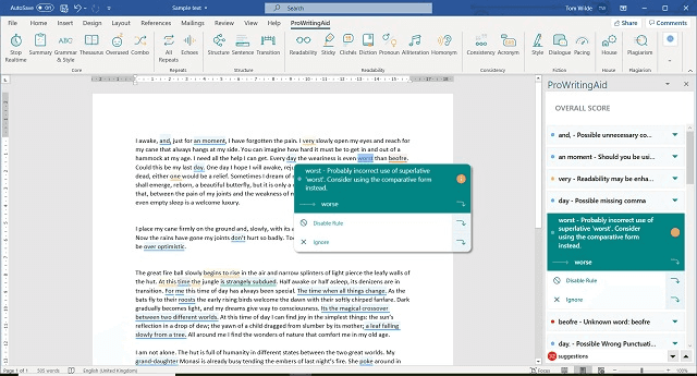 Overall: It was one of the most useful self editing tools I have ever used. Pros: I love the review features. Autocrai basis it’s criticism on the type of work you are reviewing and gives actionable advice. Cons: It could have a better method for saving and using the advice fives.