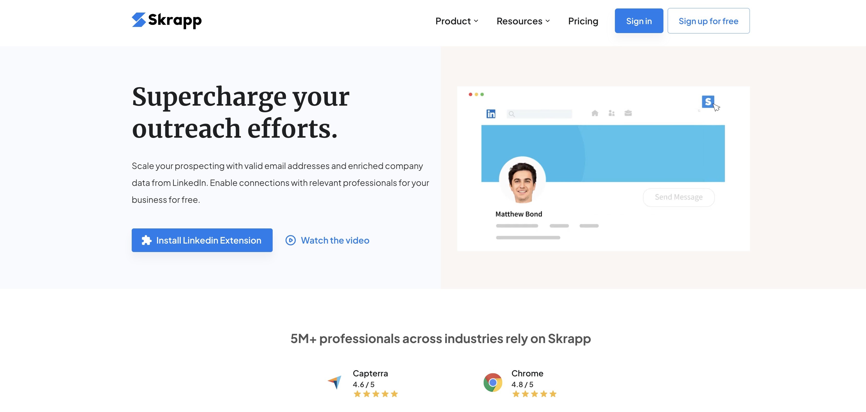 I've personally found Skrapp to be a reliable solution for building targeted prospect lists and ensuring my team's email outreach efforts are as effective as possible. The ability to not only find email addresses but also verify them in real-time is a game-changer.